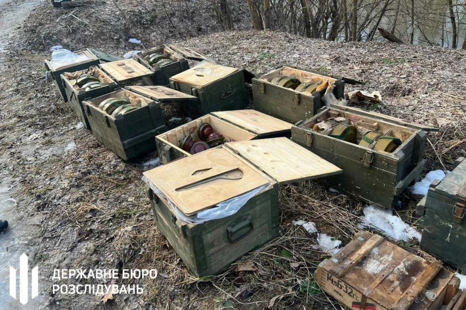 "У замаскованому в лісосмузі сховищі зберігалось майже сорок протитанкових мін, 10 саморобних вибухових пристроїв, два гранатометних постріли та два ящики з патронами калібру 14,5 мм", - додали там.