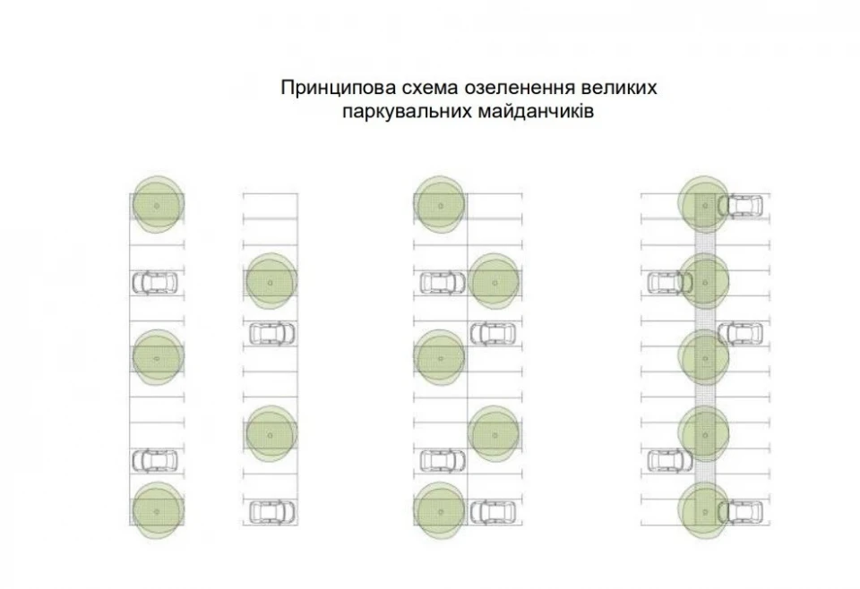 Як пояснив головний архітектор міста Антон Коломєйцев, стандарт озеленення стосуватиметься як лінійного паркування (вздовж вулиць), так і великих відкритих майданчиків біля торгівельних центрів, офісів чи громадських установ.