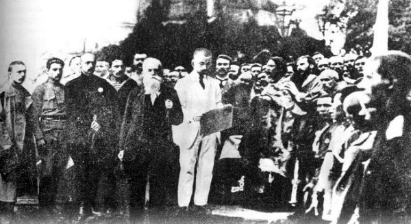 фото: Проголошення І Універсалу УНР. У центрі — голова Центральної Ради Михайло Грушевський
