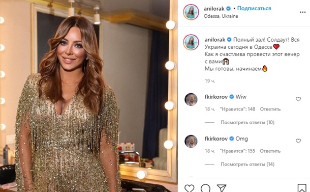 "Повний зал! Вся Україна сьогодні в Одесі. Як я щаслива провести цей вечір з вами", - написала Лорак в Instagram перед виступом.
