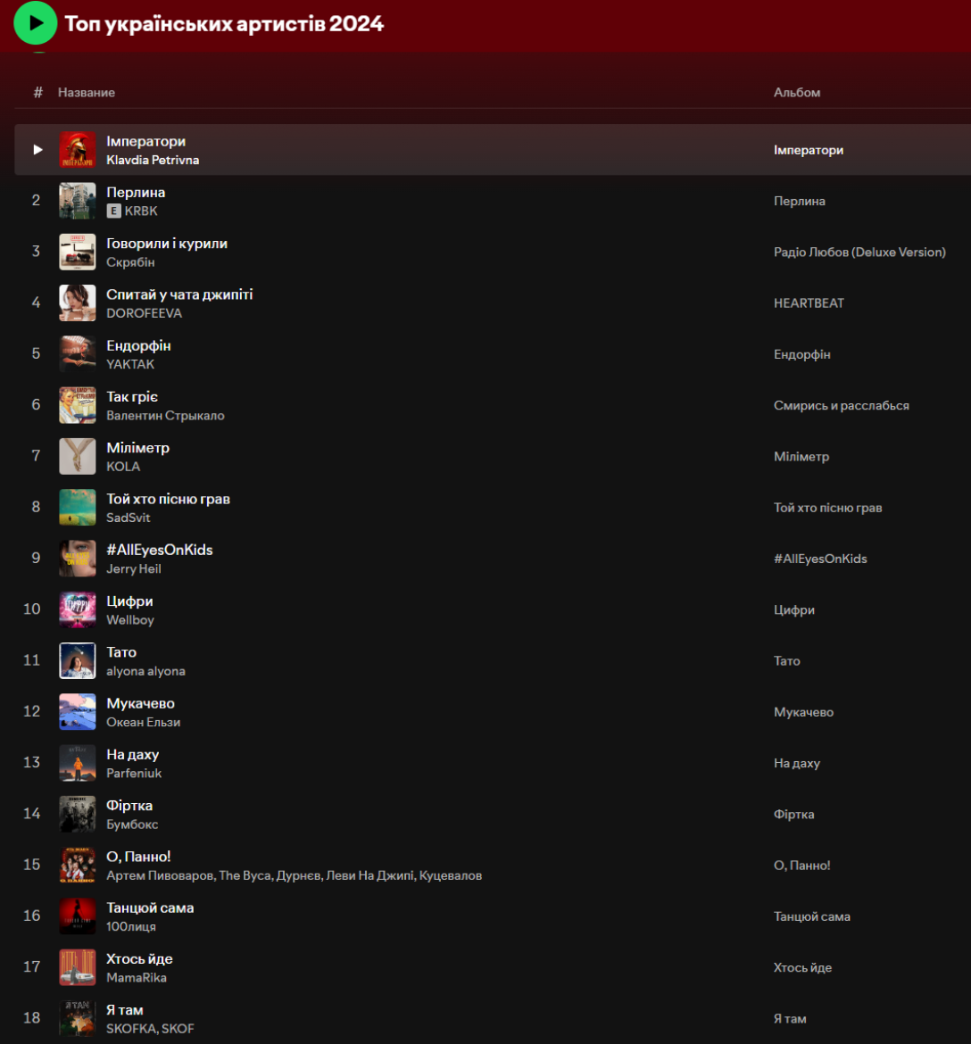 Spotify назвав найпрослуховуваніших українських артистів 2024 року