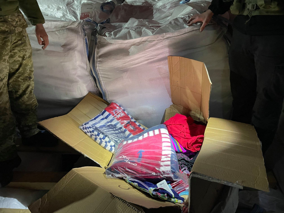 "Тонни краму – взуття, спортивні костюми, купальники, парфуми, автозапчастини тощо намагались незаконно перемістити на територію України під виглядом цементу", - йдеться в повідомленні.
