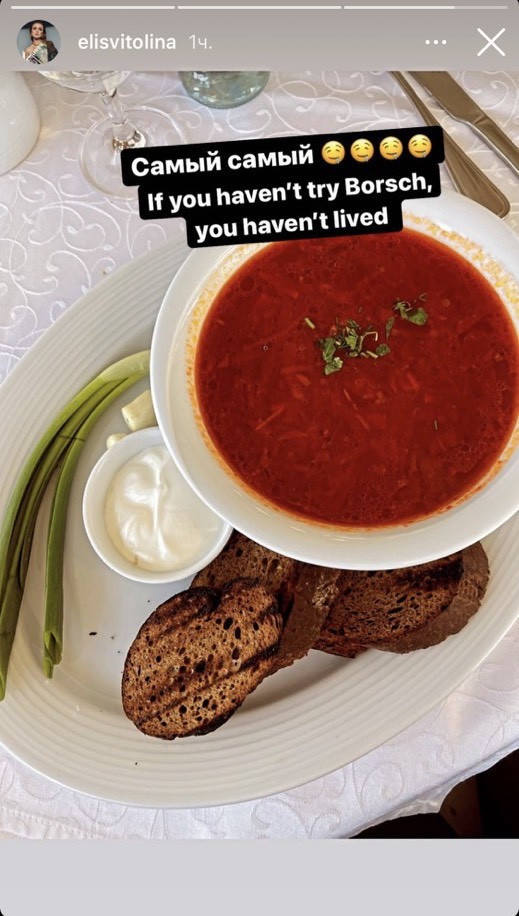 "Най-най. Якщо ви не пробували борщ, то ніколи не жили", - написала Світоліна англійською мовою.